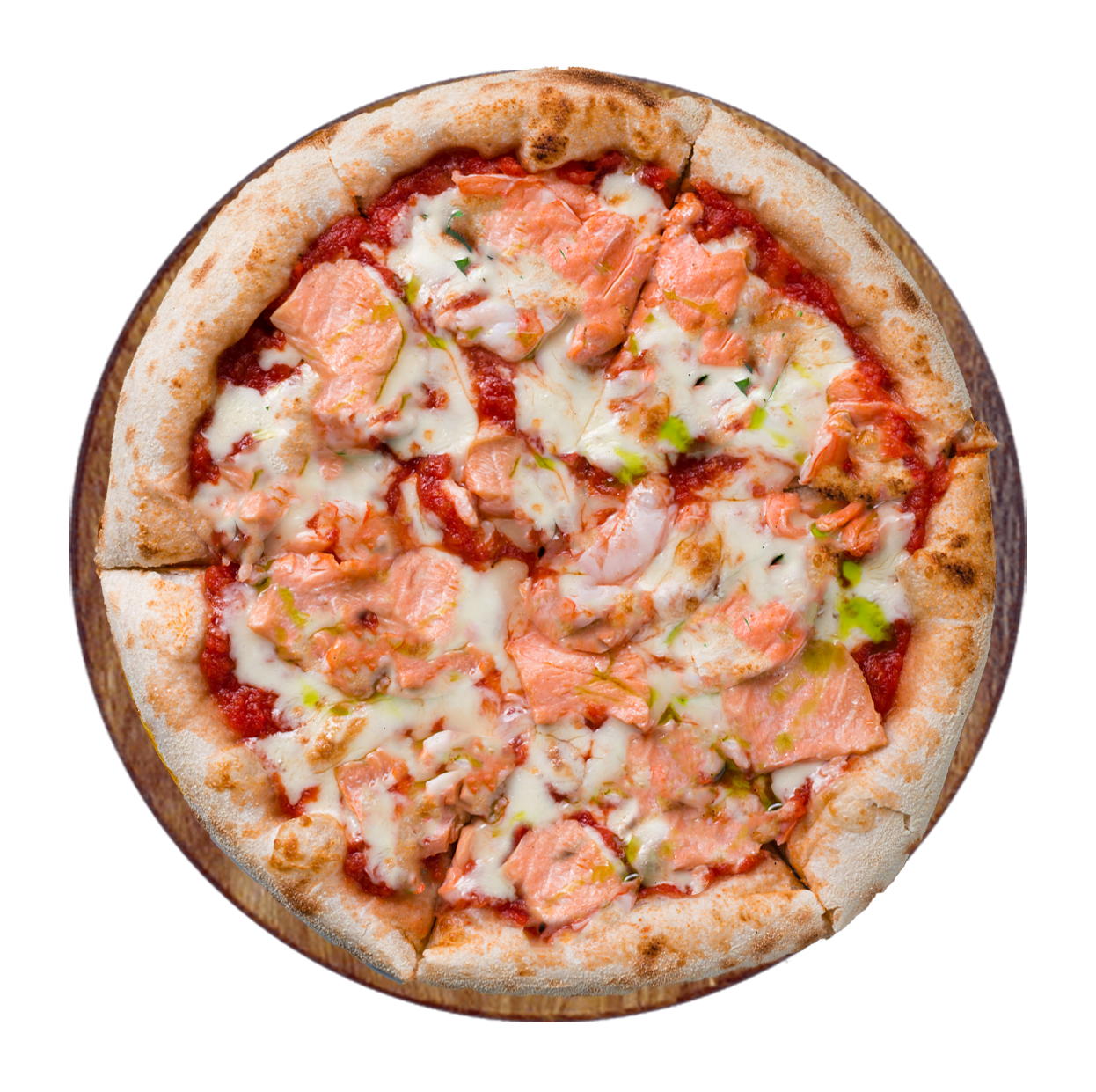 Crème fraîche, mozzarella fior di latte, saumon fumé, tomates cerises, roquette.