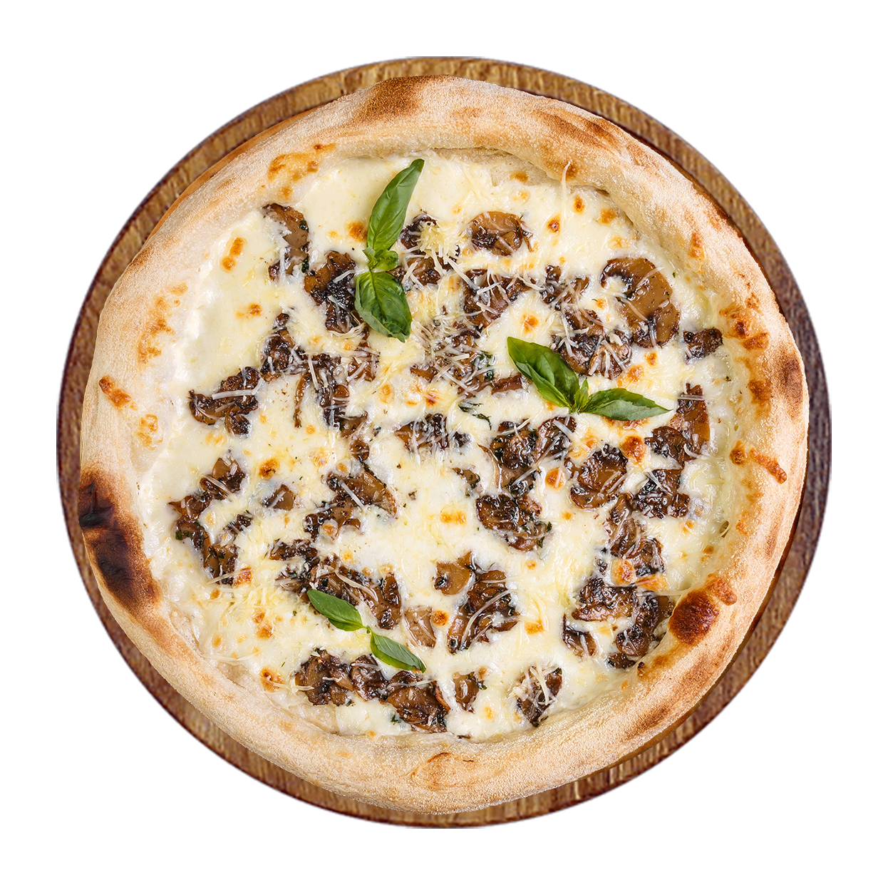 Crème fraîche, mozzarella di bufala, mozzarella fior di latte, champignons frais, pesto maison, parmesan reggiano.