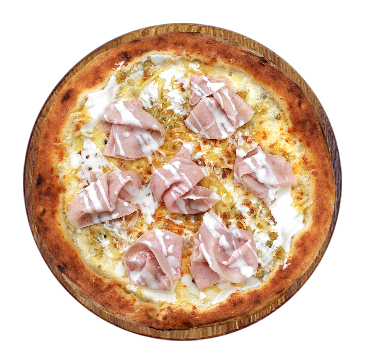 Crème fraîche, fromage, jambon, poulet, comté, poivrons.